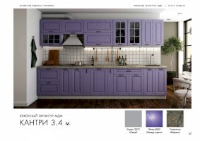 Ослепительная чистота и свежеть царят на кухне, обставленной мебелью из гарнитура «Кантри». Особую атмосферу создает отделка бирюзового, голубого, сиреневого цветов. Простой дизайн и хорошо различимая текстура натуральной древесины придает интерьеру деревенскую стилистку. Для изготовления комплекта использованы качественные и экологичные материалы.