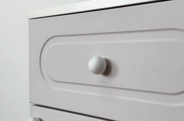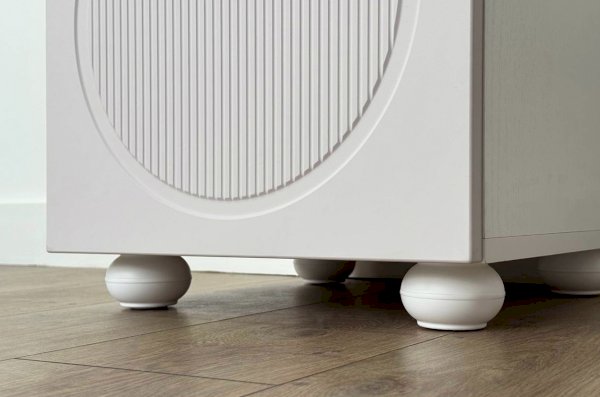 Корпус тумбы выполнен из ЛДСП толщиной 16 мм, фасады изготовлены из МДФ в плёнке ПВХ и декорированы фрезеровкой, подчёркивающей стиль серии Милана. Оригинальные круглые ручки и опоры дополняют дизайн, придавая мебели лёгкий и аккуратный внешний вид.