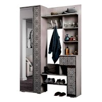 Прихожая Шанель обратит на себя внимание с первого взгляда. Выполненная в комбинации темного и светлого цвета ясеня, она имеет оригинальный орнамент на фасадах. Модель наполнена всеми необходимыми зонами для хранения вещей, включая несколько открытых полок. Большое зеркало, встроенное в дверцу распашного шкафа.